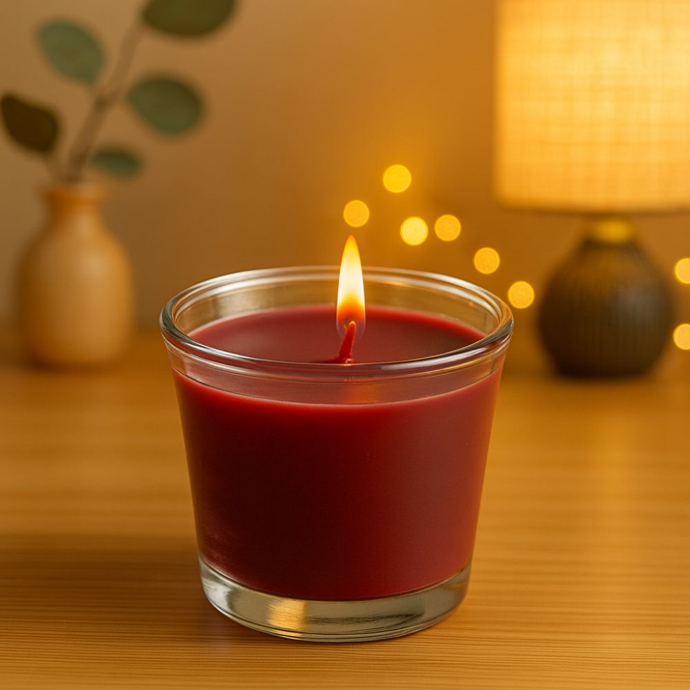 Fragrance Shot Glass Candle, Scented Lavender, Maroon