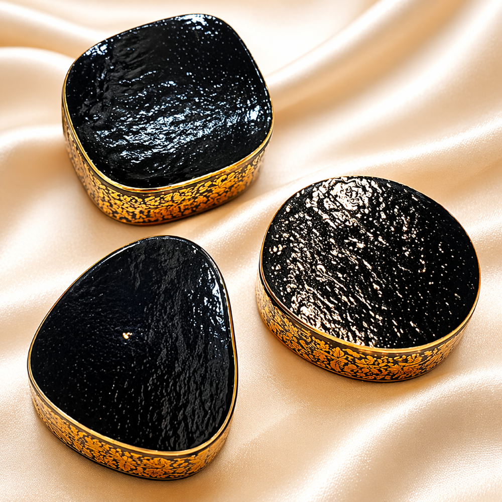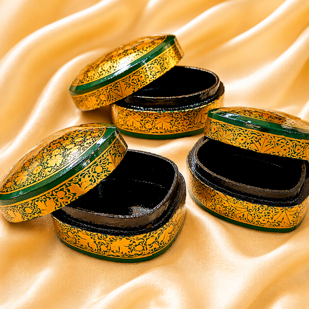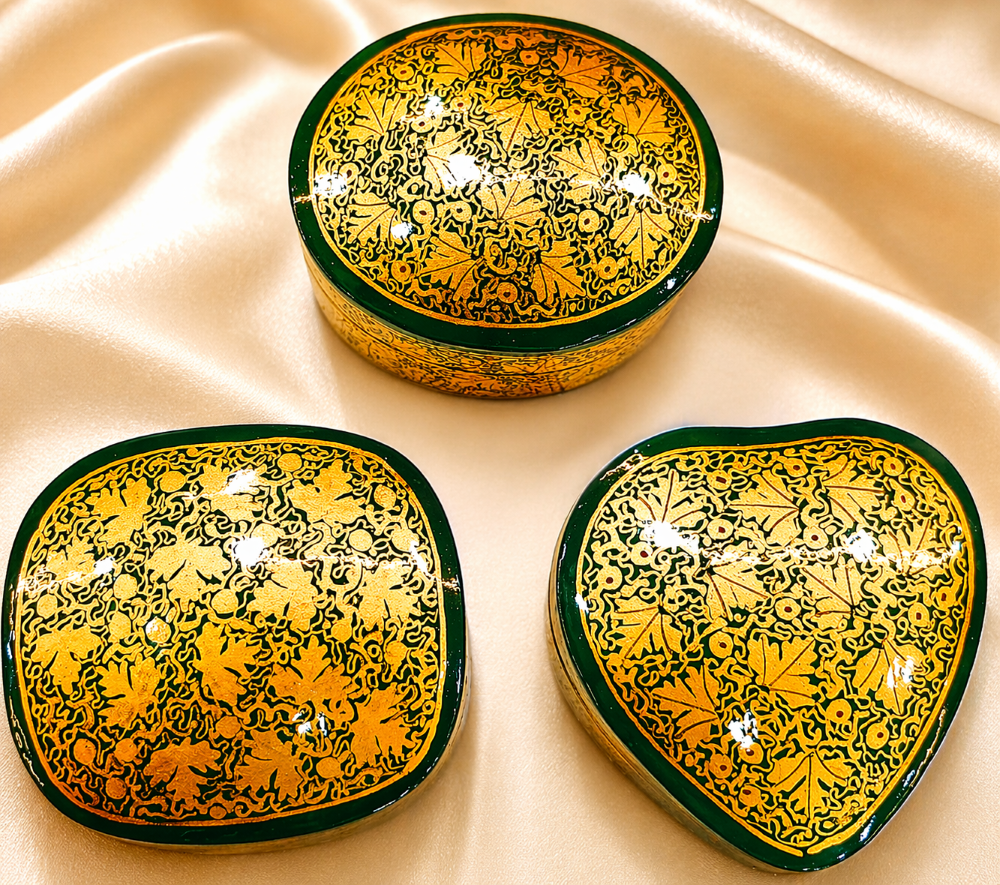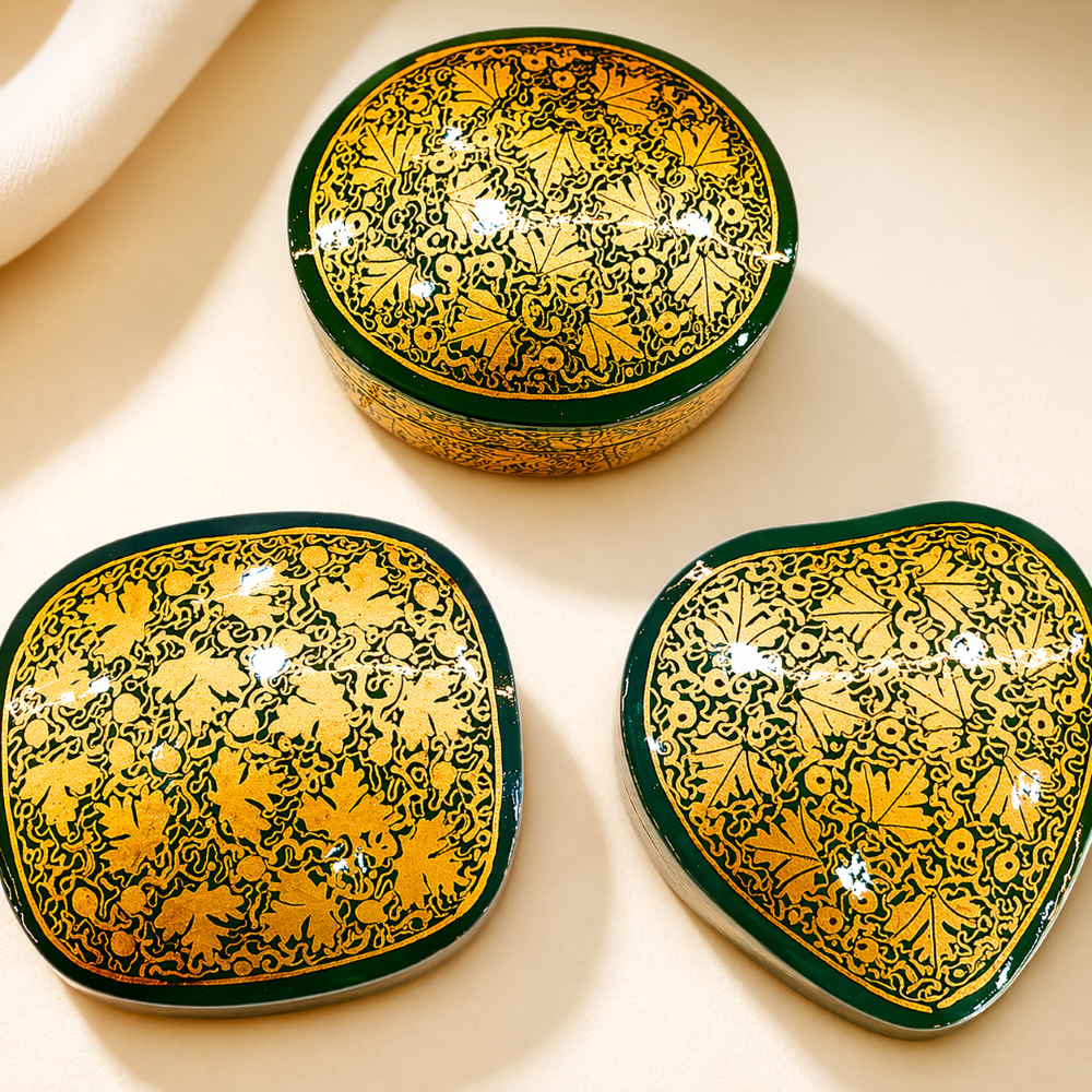 Experience timeless artistry with this handcrafted paper mache set from Kashmir.