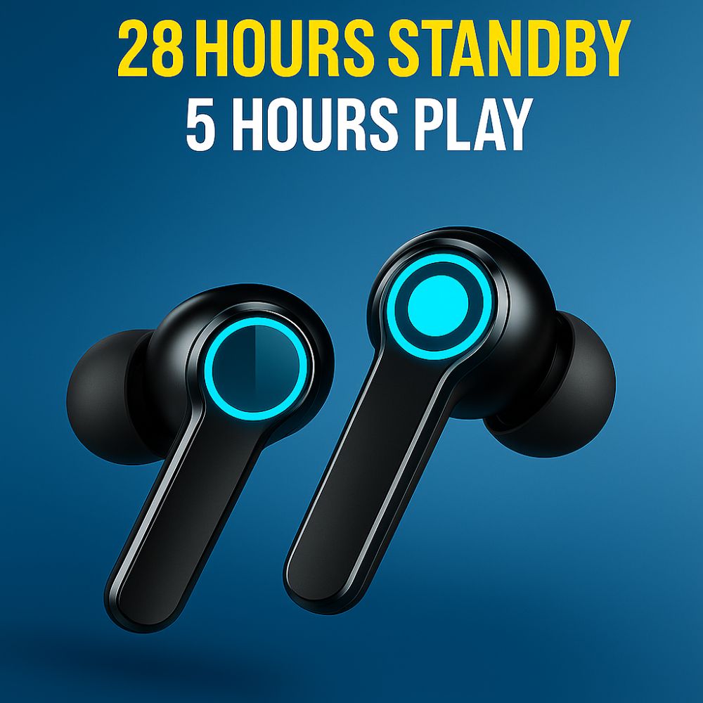Designed for long days and longer playlists, these wireless earbuds deliver up to 5.5 hours of continuous playback on a single charge. The powerful 2000mAh rechargeable charging case extends total listening time up to 22 hours, letting you charge on the go and stay connected all day without hunting for a socket.
