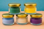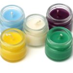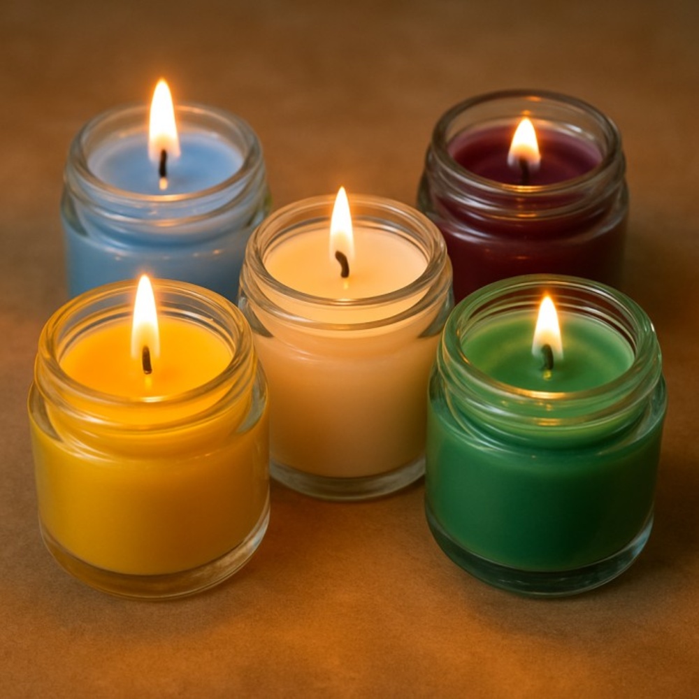 Package Content : Set of 5 Glass Small Midgit Jar multi colour Scented Candle.