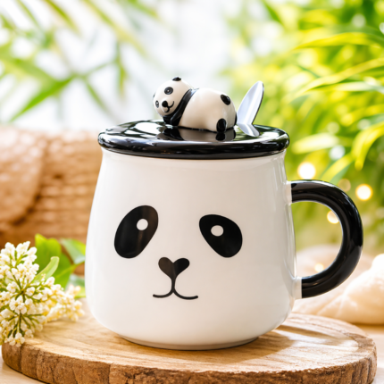 Panda Mug with 3D Hand-Painted Lid and Spoon