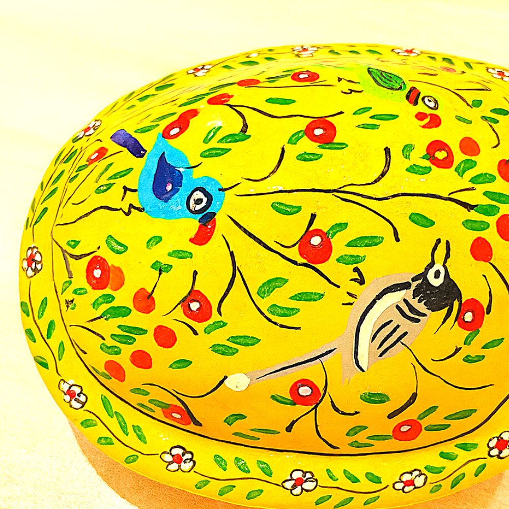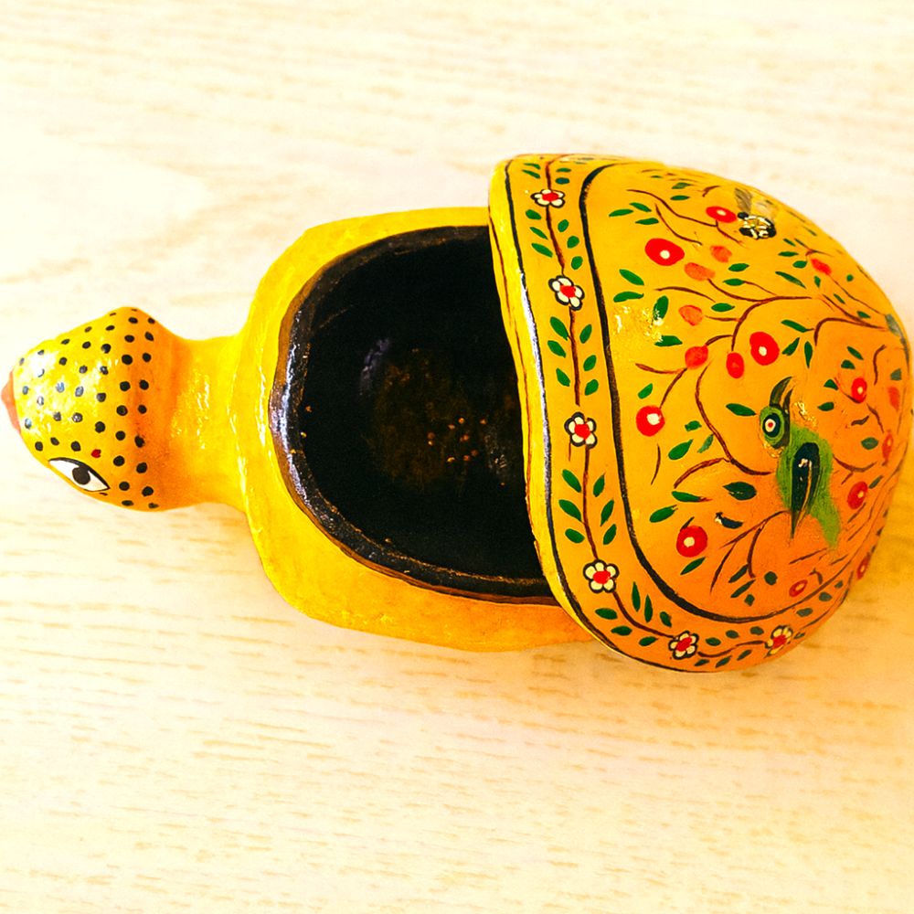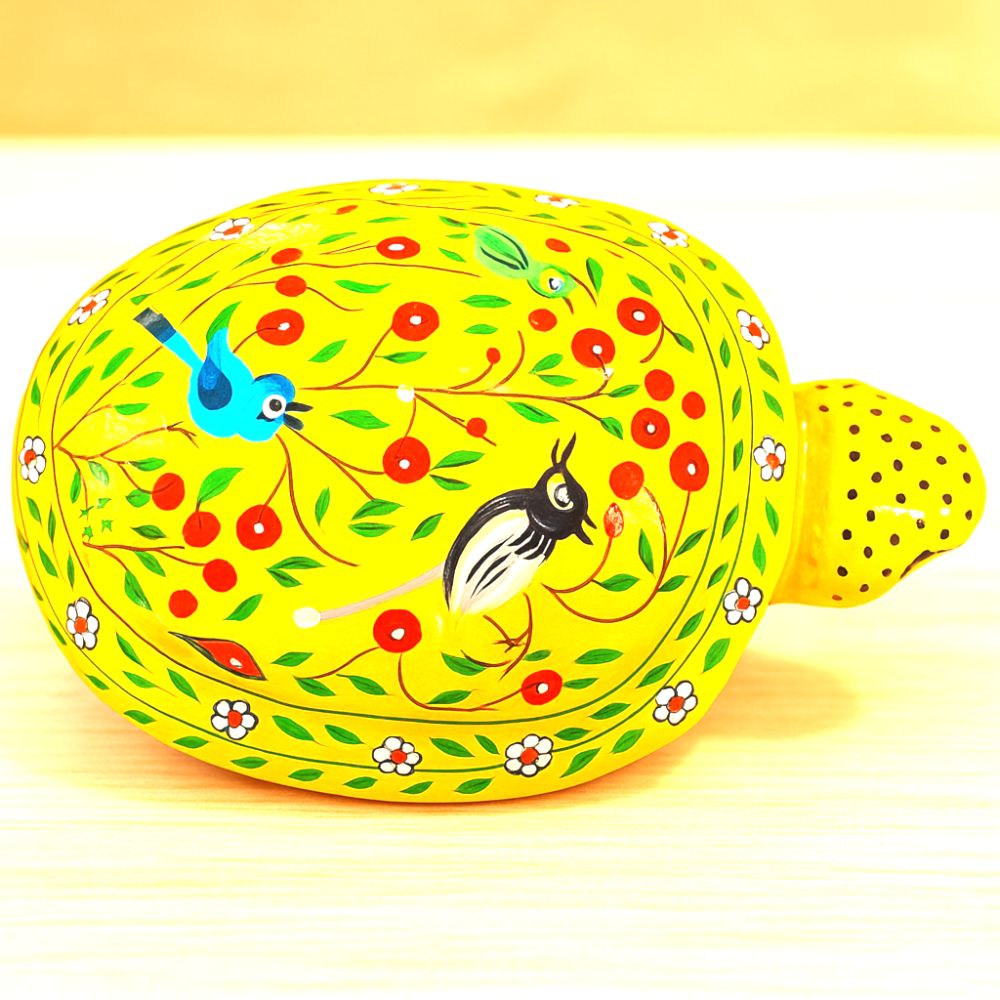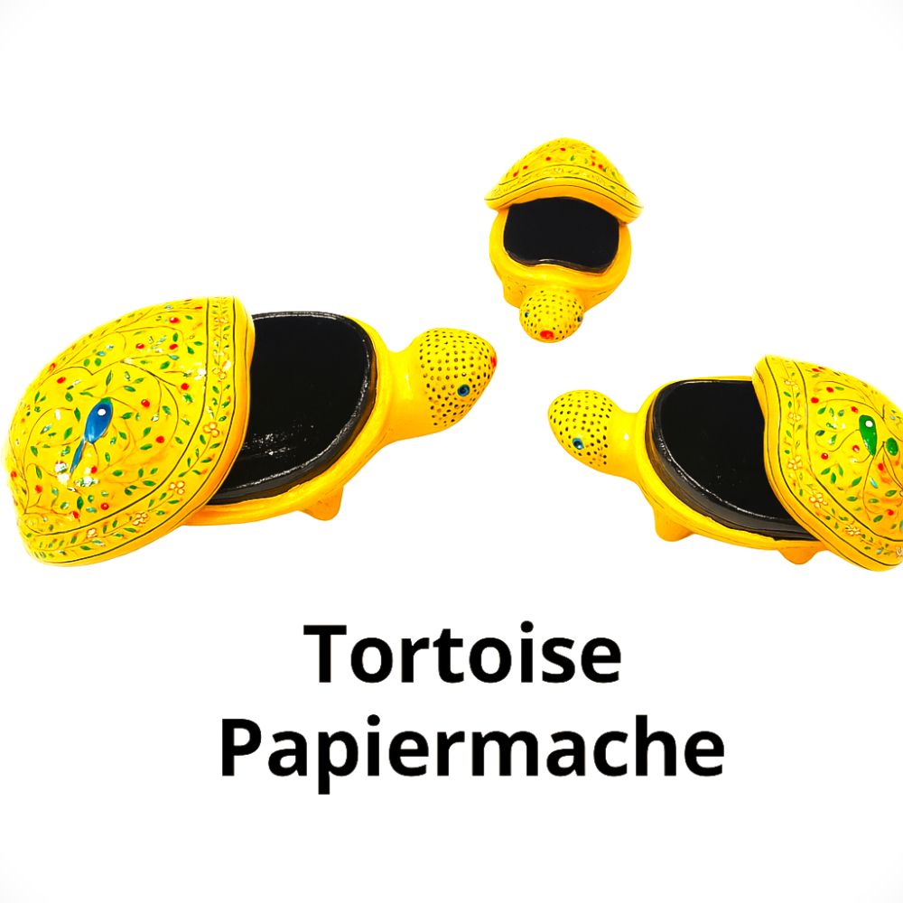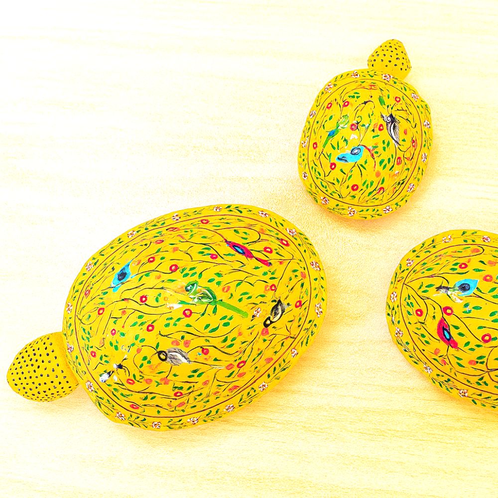 Home Kashmiri Paper Mache Papiermache, Turtle, Set of 3, gift, handicraft, kashmiri, handmade, yellow, birds, design